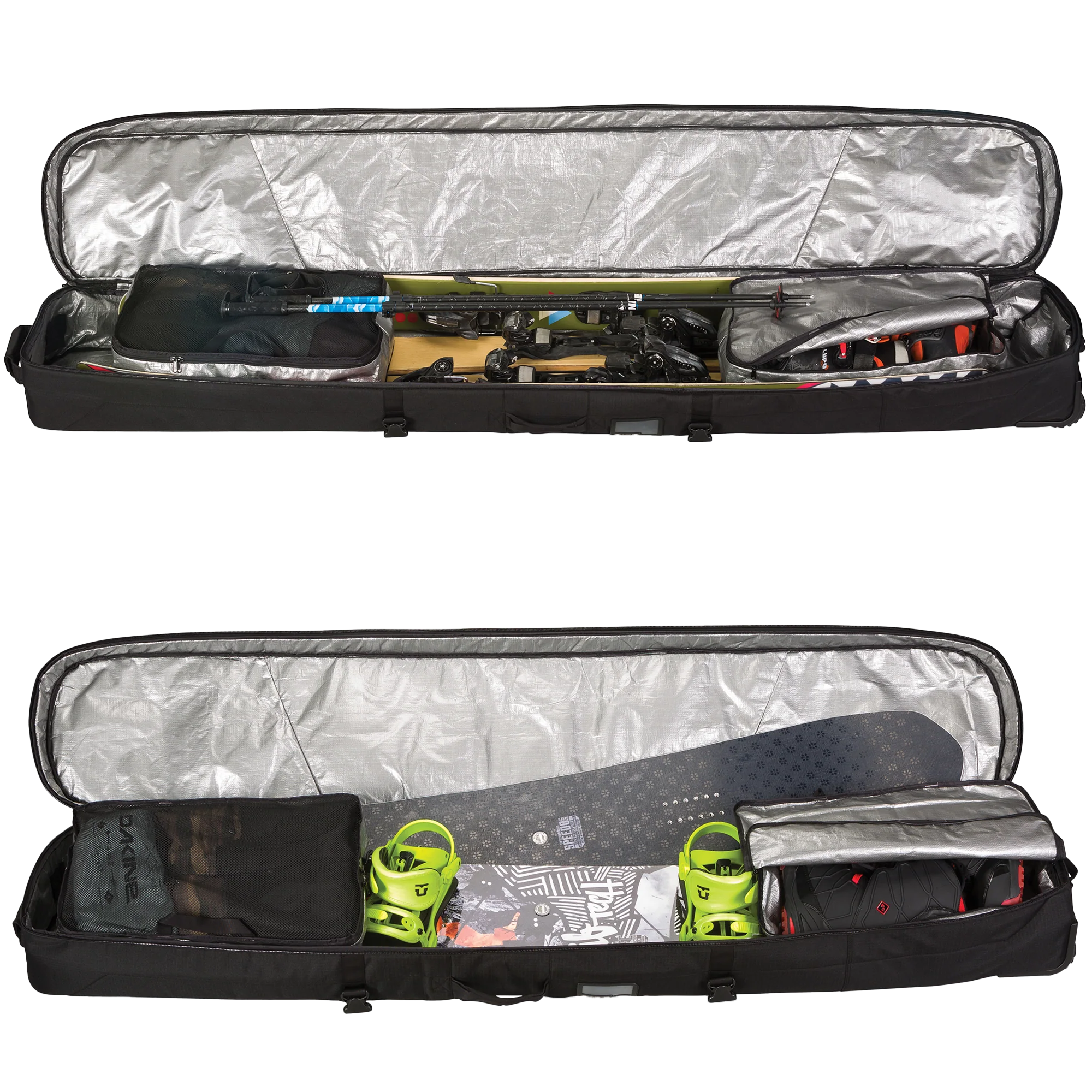 De beste ski- snowboardtas op de markt: de Dakine High Roller (maten 165 cm en 175 cm) & Dakine Boundary (185 cm en 200 cm). Met wielen, dikke padding en ruimte genoeg voor twee snowboards / skis en jouw hele wintersport uitrusting.Nieuwprijs is €289,95 – maar jij huurt ‘m al voor €34,95!