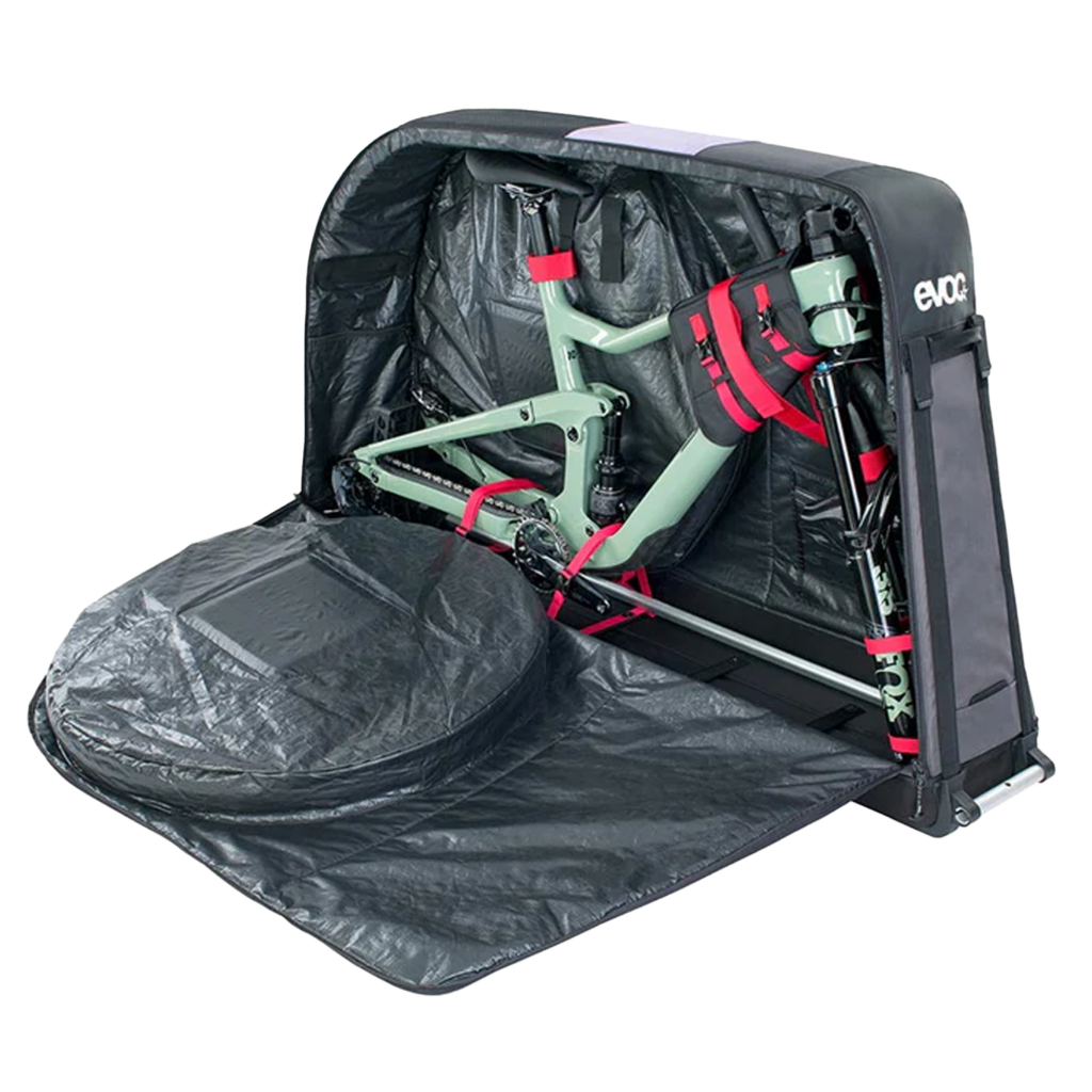 De EVOC Bike Bag Pro is de perfecte fietskoffer voor bijna elke fiets: van je racefiets tot mountainbike. Dit is het PRO model en komt met wielen voor en achter, heeft dikke padding en eenvoudig systeem om je fiets vast te zetten! Bij inpakken moet je stuur wel los worden gekoppeld. Huur de fietskoffer makkelijk & snel en na je vakantie stuur je ‘m weer eenvoudig naar ons terug. Dat bespaart weer de rest van jaar ruimte thuis.