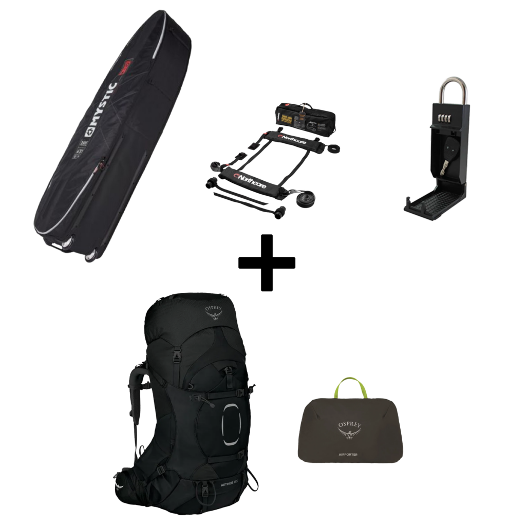 Het complete Mystic surf- / kitetrip pakket + backpack bestaat uit: