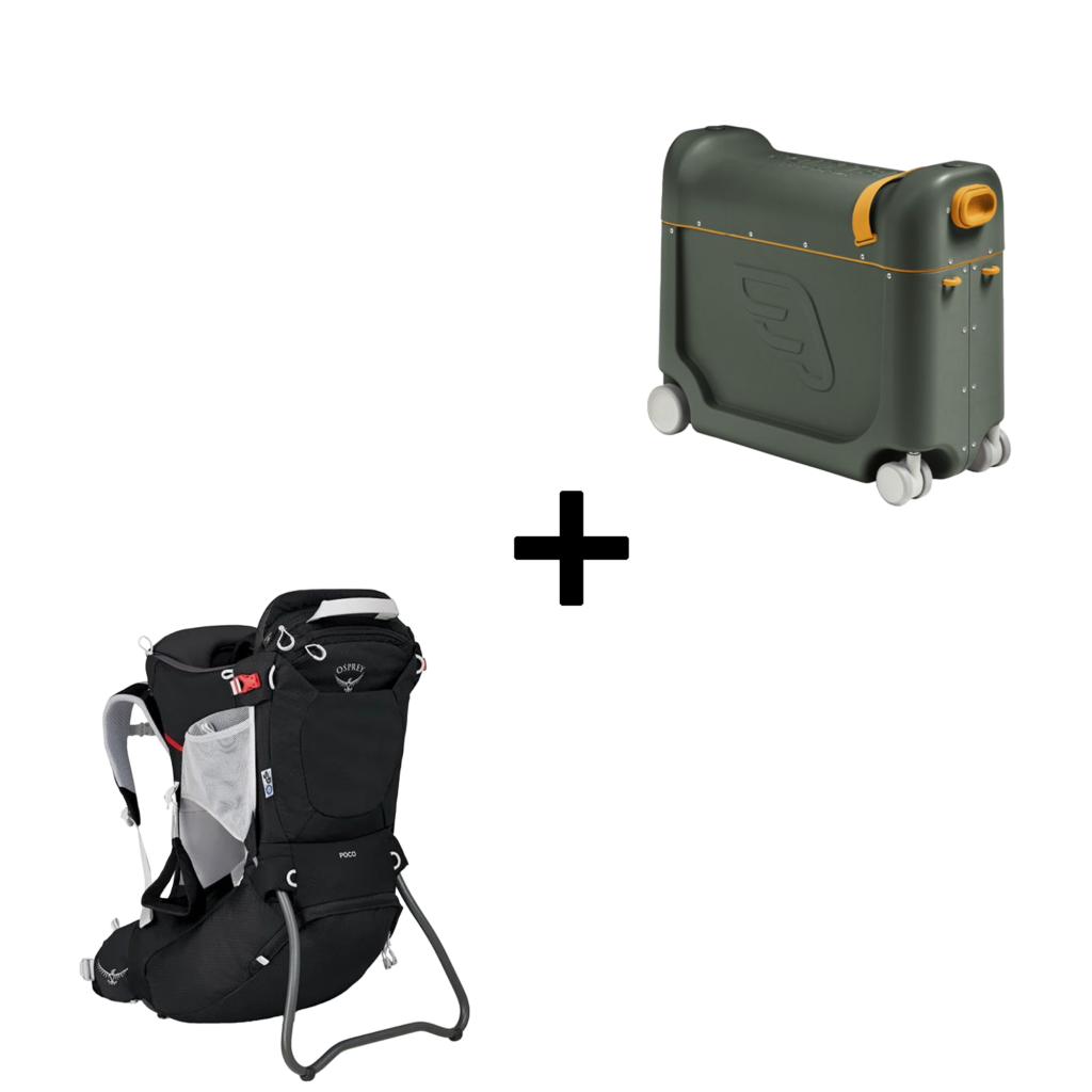 Reis comfortabel met de trein of het vliegtuig met je kinderdrager en je kleine met een eigen koffertje. Met dit voordeelpakket krijg je 10% korting op dit superpakket dat jij nodig hebt voor een topvakantie: